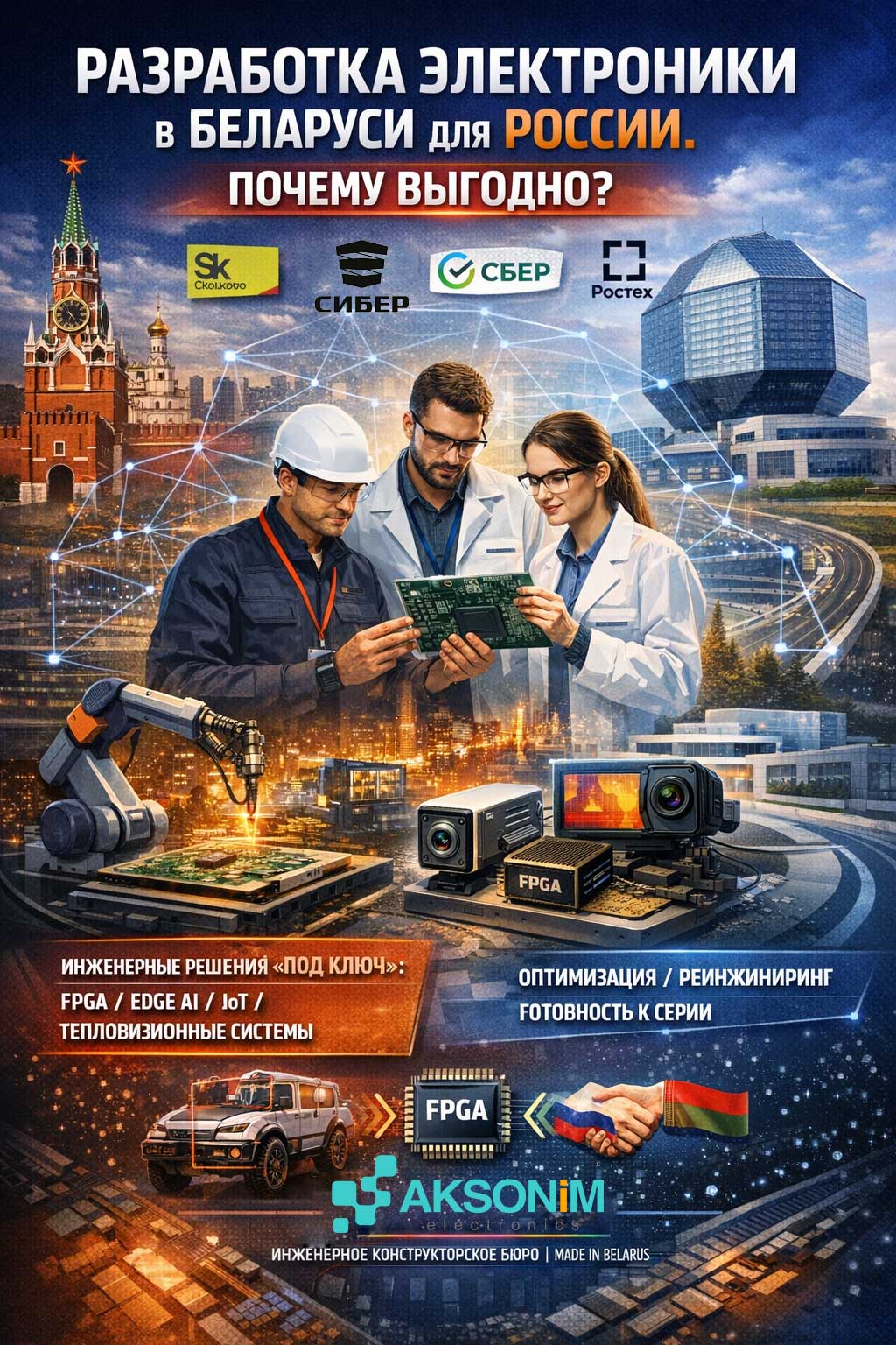 Именно эту задачу закрывает АКСОНИМ — инженерное конструкторское бюро из Беларуси, которое помогает российским компаниям создавать собственные интеллектуальные электронные продукты быстрее, технологичнее и с расчётом на серию.